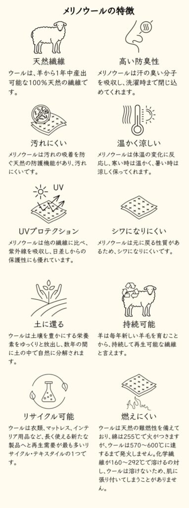 - 天然の抗菌・防臭性で汗のおいを抑制